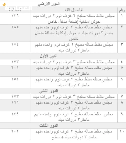 تعلن شركة مسكنكم للخدمات العقاريه عن عرض عباره عن ادوار للبيع متواجد في حي طويق بالرياض. تحتوي الشقة على ما يلي: الدور الارضي عباره عن: مجلس+مقلط+صاله+مطبخ+3 غرف نوم و احد منها ماستر+2 دورات مياة تبلغ مساحة الدور الارضي : [154] متر مربع الدور الاول : عباره عن مجلس+مقلط+صاله +مطبخ+3غرف نوم واحد منهم ماستر +3 دورات مياه تبلغ مساحة الدور الاول : [201] متر مربع الدور الثاني : عباره عن مجلس+مقلط+صاله +مطبخ+3غرف نوم واحد منهم ماستر +3 دورات مياه تبلغ مساحة الدور الثاني : [196] متر مربع. الدور الثالث : عباره عن مجلس+مقلط+صاله +مطبخ+3غرف نوم واحد منهم ماستر +3 دورات مياه +سطح تبلغ مساحة الدور الثالث : [202] متر مربع مميزات الشقة والمشروع: الشقة لها إطلالة رائعة، وذات تصميم مودرن. يوجد حوش مع امكانية اضافة مدخل خاص كما يتوافر بالمجمع مساحات خضراء، وحديقة. لكل سيارة لها موقف سيارة خاص بها. تتمتع بقربها من الأماكن الهامة مثل ( المدارس، والأماكن التجارية، وغيرها). لمعرفة المزيد من التفاصيل يمكنكم الاستفسار التواصل ع رقم 0550155733 ويمكنكم الحجز في المشروع من خلال https://maskancom.com/ حساب تيليجرام : https://t.me/maskanabeercom البريد الإلكتروني: (maskan55055@gmail.com) شركة مسكنكم للخدمات العقاري. #مسكنكم #المملكة_العربية_السعودية #الرياض
