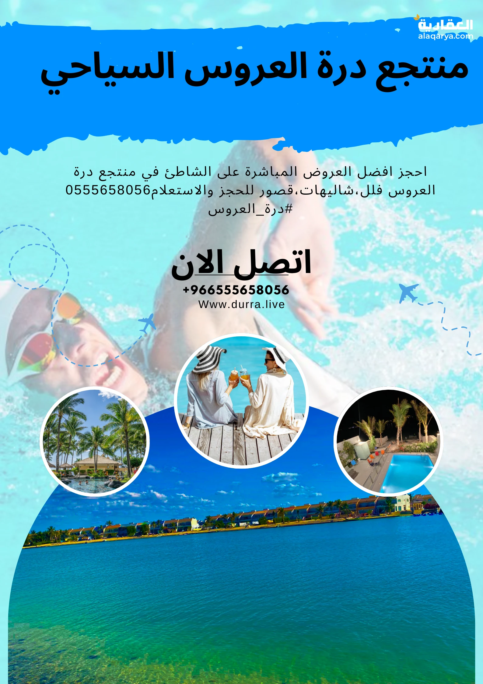 احجز أفضل العروض المباشرة على الشاطئ في منتجع درة العروس فلل،شاليهات،قصور للحجز والاستعلام0555658056